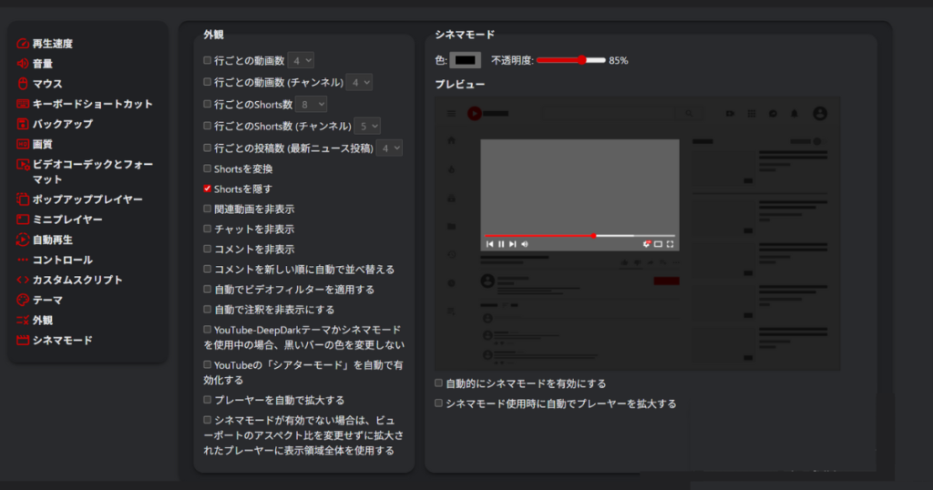 Youtubeの外観や操作感を大幅にカスタマイズできる拡張機能